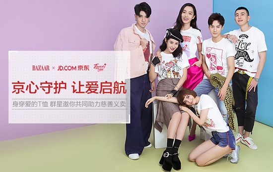 作为2017 BAZAAR明星慈善夜独家电商平台合作方,京东特别携手六位国际顶尖设计师:张驰、Masha Ma、王玉涛、吉承、丁又乔、姜悦音精心推出六款慈善T-Shirt, 邀您共同“京心守护,让爱启航”。