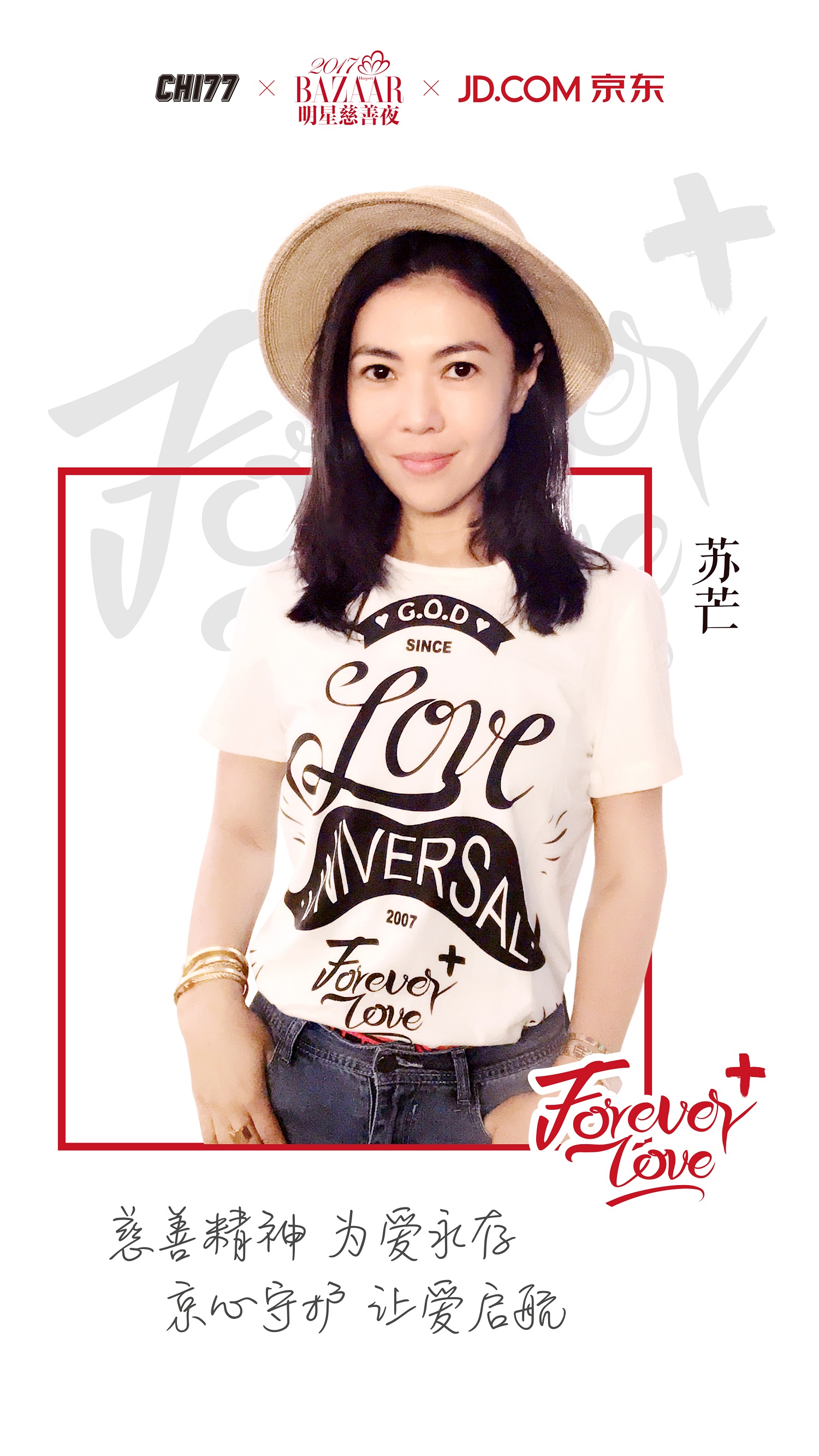 而在8月21日的直播互动中,时尚女王苏芒已早早穿上张驰精心设计的慈善T-Shirt并介绍、展示了衣服上的图案与其背后的含义。T-Shirt上一气呵成的简洁款式在灵动雀跃的图案中演绎出别样的Forever Love精神,让每个拥有时尚信仰的人都能不拘世俗,率性表达真我。提到慈善夜15年来不惧风雨的坚持,苏芒更是几度哽咽,简单的言语已不足以表达她和她的团队对慈善事业的热爱与付出。相信这次京东与BAZAAR明星慈善夜爱的联合将感动、鼓舞更多心中有大爱的人。