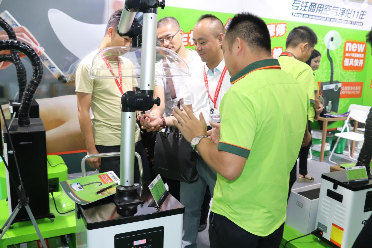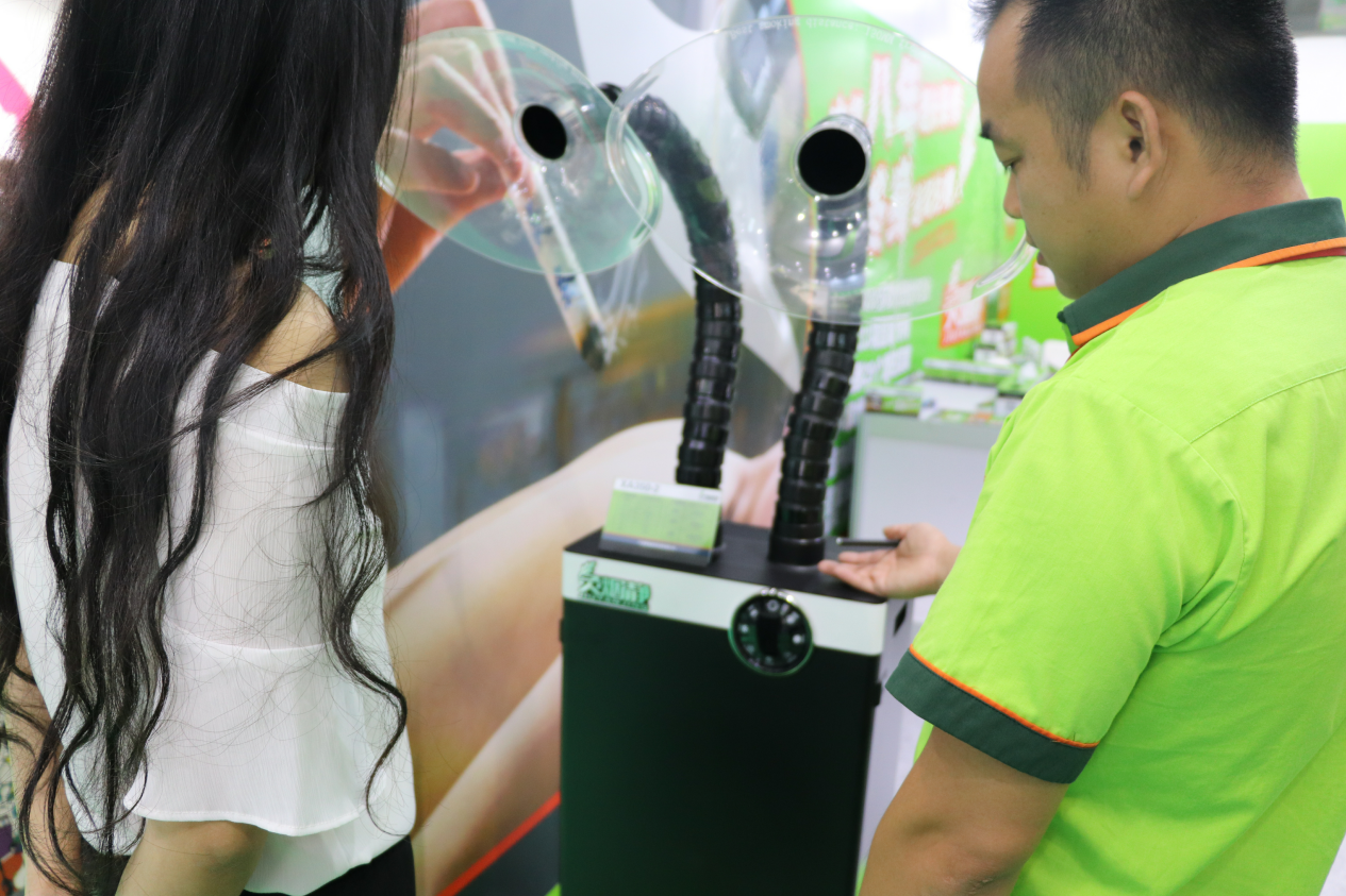 广东新氧器净化科技有限公司在深圳华南国际电子设备暨微电子工业展现场 9月3--9月5日公司产品亮相于广州国际美博会,两届展会期间新氧器净化科技携带专为焊锡烟雾净化设计的“锡烟静”品牌,最新的第七代“恒风快开”焊锡烟雾净化器:XS250-1、XS350-2参展。简约大气、高效能的第七代“恒风快开”焊锡烟雾净化器均能对应多种焊锡环境。可以自动调节功率风速、补偿流量,而滤芯的更换效率也大大提高。广东新氧器展位更是吸引了电子制造领域国内外观众的广泛驻足,好评如潮!受到厂家的青睐。