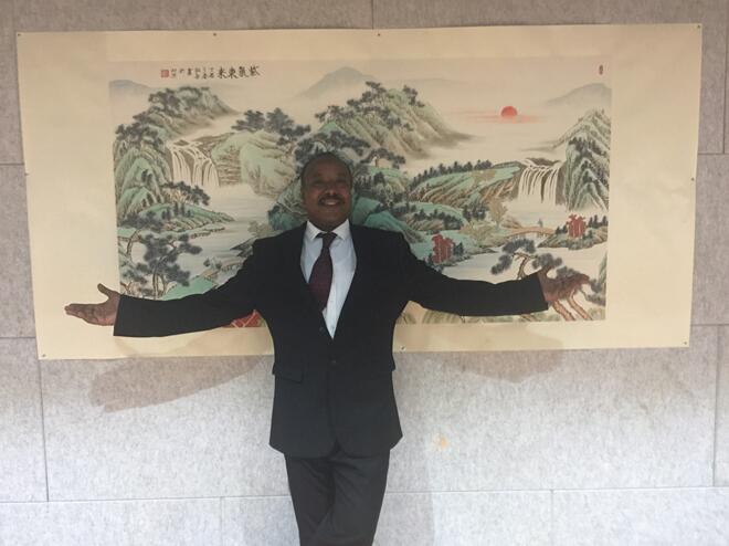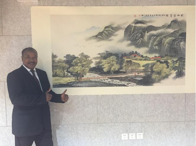 贾沙哈特先生对画家杨弘岳老师的作品给予高度评价:艺术无国界,是杨弘岳老师让埃及了解到中国画、中国文化。参观最后杨弘岳赠与埃及农业部贾沙哈特先生一幅《旭日东升》以表示对中埃两国友谊经久绵长的美好祝愿。 |