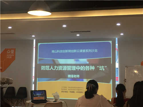 为提升企业在人力资源管理中的处理能力及应变能力。7月22日下午,由深圳市南山区科技创新局指导,南山区科技创业服务中心主办,中咨联教育技术(深圳)有限公司承办的以防范人力资源管理中的各种“坑”为主题的沙龙活动在南山区高新园大冲商务中心有序的开展着。