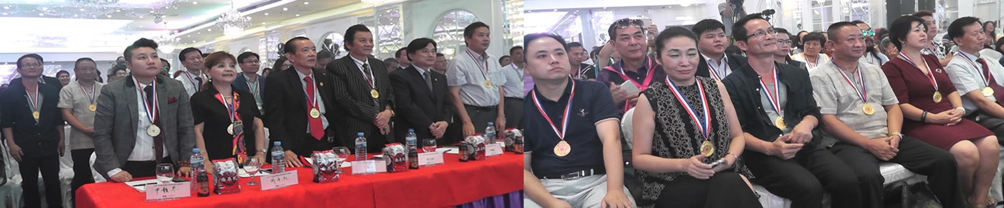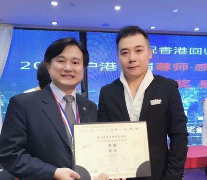 中国香港九泷商会谢佩玲秘书长为姚丽婷颁奖 来自老挝川圹特区的陈宇君主席派出代表为香港GOD乐队颁奖。这支乐队的经纪人就是香港歌坛不老松谭咏麟的经纪人来的,发展势头你懂的……