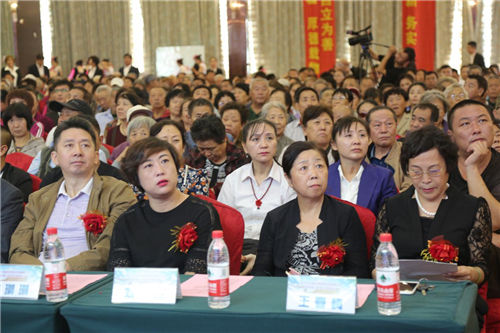 千人会场座无虚席 与会领导及夕阳红志愿工作者 出席大会的领导有辽宁省老龄办权益处处长毕琳琳、沈阳市慈善总会主任王裕、沈阳市皇姑区夕阳红为老服务中心业务主管单位领导皇姑区民政局民间组织管理科科长冯艳杰、沈阳市食品药品监督管理局处长刘娜、沈阳市大东区卫生局局长王春梅、菩爱之家爱心团队孟美含、张承荣等人。