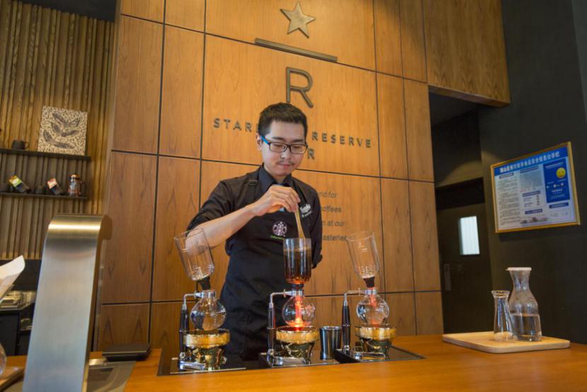 陈小姐是常来门店打卡的熟客,偏爱轻柔、偏酸的中度烘焙,每次听闻有新的臻选咖啡豆到店,都会立刻前来尝鲜,她说:“我们都是闻香而来,希望能第一时间喝到当季臻选,而每一次的期待都有惊喜,像这一次的坦桑尼亚什维瓦卡的青苹果风味,我个人就非常中意!” 独一无二,定制属于你的“那一杯” 星巴克咖啡大师会根据顾客喜好选择臻选咖啡豆,根据咖啡豆来推荐最合适的煮制方式,为顾客进行“专属定制”,让每一位顾客都能在这里找到自己最爱的“那一杯”。海口日月广场星巴克臻选店提供手冲、虹吸和黑鹰咖啡机等多种煮制方式,供咖啡爱好者选择。 该店的臻选吧台位于入口处,顾客一进门便可以欣赏到咖啡师演绎的一幕幕精彩的咖啡煮制表演。手冲咖啡因为萃取的时间较长,能够拥有更加细腻丰富的层次感,这也是很多咖啡爱好者热爱手冲最重要的原因之一。而虹吸咖啡的煮制过程则更具观赏性,优雅的虹吸咖啡器具在卤素灯下增强了视觉冲击,水在高温沸腾融入咖啡后颜色的变幻莫测,衬托出美轮美奂的咖啡氛围。