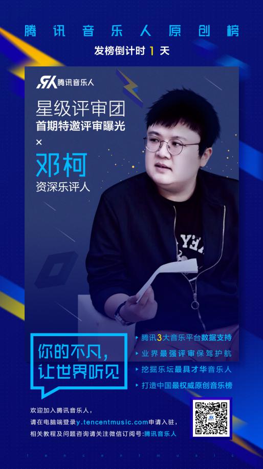 在已发布的两期榜单中,腾讯音乐人项目分别邀请到了知名乐评人邓柯和流水纪,从编曲、歌词、音色、主题、音效、情绪等多个维度对榜单Top 10的歌曲一一进行了解读,可谓诚意十足。而在昨日公布的榜单中,来自伯克利音乐学院的Terry Zhong、余佳运等新生代原创音乐人位居前三甲,作品获得海量曝光。 腾讯音乐人原创榜希望通过“平台播放大数据+专业评审评定”这种全新模式,让更多新生代原创音乐人得到专业的指引,打造中国乐坛最专业、最权威的原创榜单。