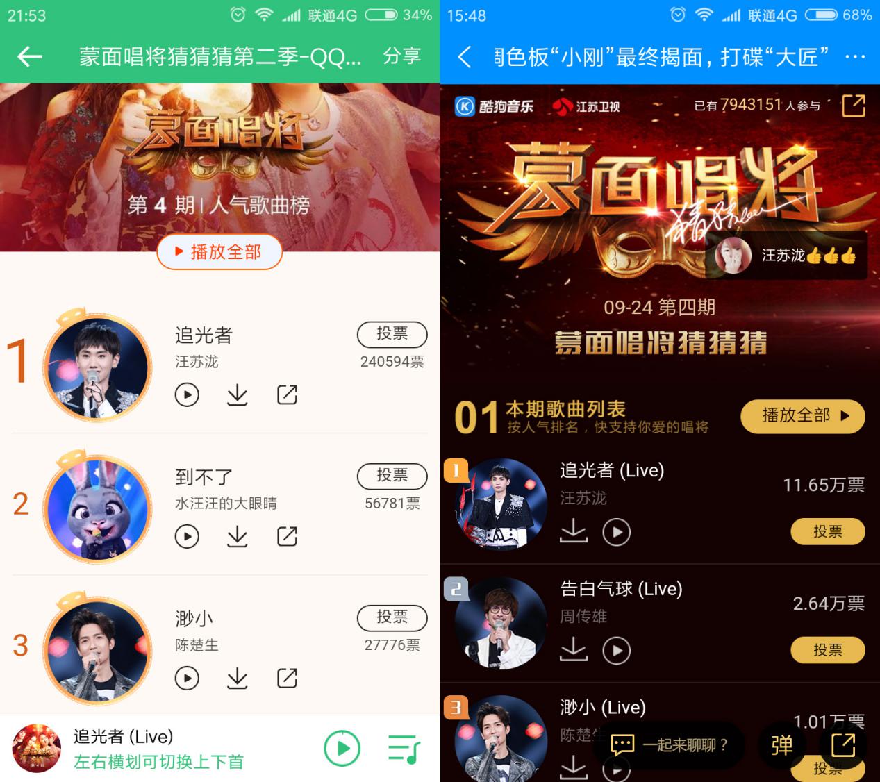 9月24日晚,蒙面唱将猜猜猜第二季第四期如期上线,柯南附身的猜评团怒揭5面,成功猜中“卡带发型有点乱”陶喆、“调色板”周传雄、“复仇的裁缝”大鹏、“红骑士”陈楚生、“音乐大匠”汪苏泷。节目播出后,乐迷们除了在第一时间通过节目独家音频合作方腾讯音乐娱乐集团旗下QQ音乐、酷狗音乐、酷我音乐聆听高品质纯享音频之外,也对本期节目新晋的两位歌手展开了身份线索大调查。
