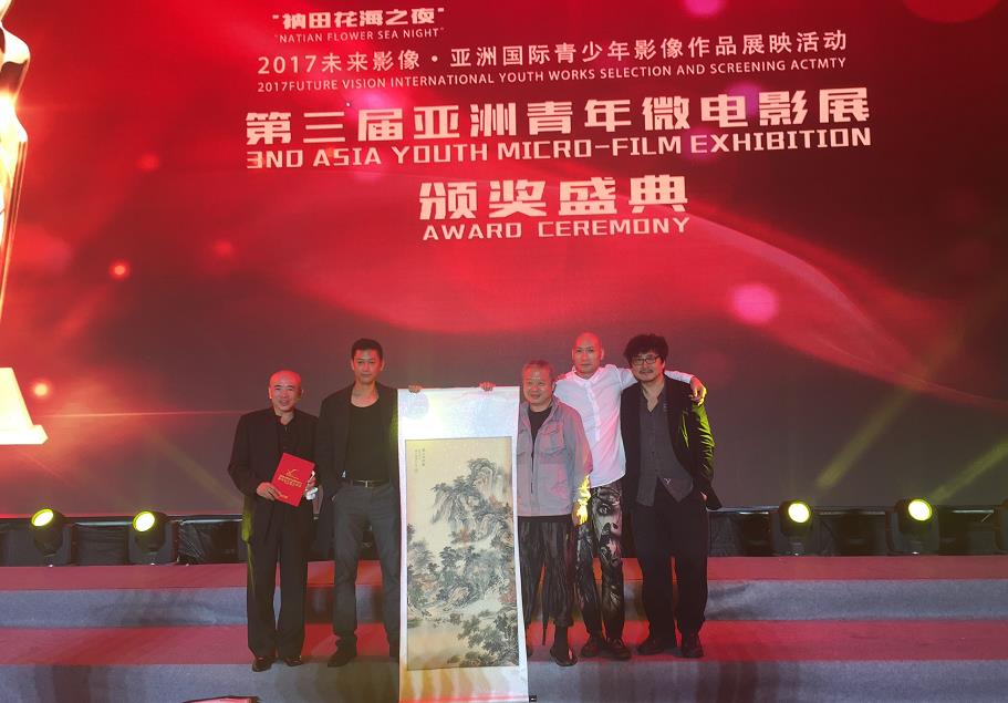 这场亚洲顶级的微电影盛典,为所有微电影人提供了交流对话的专业平台,吸引了来自全亚洲不同国家和地区的微电影爱好者,他们与出席盛典的领导嘉宾、外国使节、国际知名导演、影视一线明星、亚青展入围影片剧组代表、极拍48小时微电影大赛团队、网络红人主播,以及百余家媒体一起,共同见证亚青展备受关注的巅峰时刻。著名国礼画家杨弘岳也为此次亚青展送去自己的作品《万里江山图》表示祝贺。