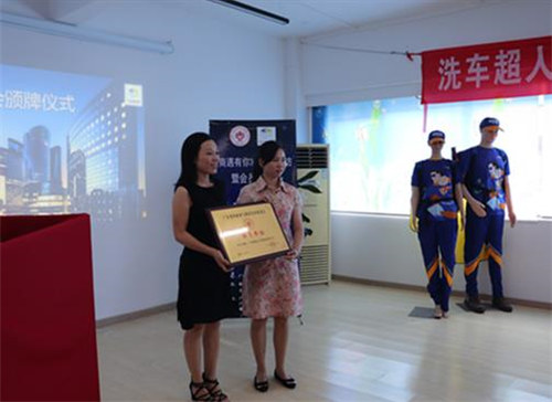 首先,省就创会会长陈洁洁作了致词,广州粤润汽车服务有限公司董事长陈小青、总经理孔国星、SYB创客俱乐部理事长张顺娜相继发言。随后,广州粤润汽车服务有限公司副总经理杨煜钊详细介绍了“洗车超人”性能以及该项目的优势。大会现场上,广东省再就业与创业发展促进会向会员单位颁发“省就创会理事单位”“省就创会会员单位”省就创会会员服务联盟单位”匾牌。