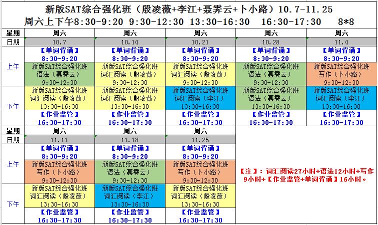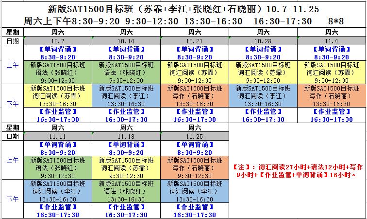 江博新SAT1500目标班 江博新SAT1500目标班主要适合学习完SAT强化班、新版SAT已考1300/1350分以上、目标1500+的学员。配套教材包含了阅读、语法和写作三个方面,阅读主要为可汗学院4级真题+OG8套真题,语法则主要是可汗学院4级真题+OG8套真题,写作则是江博内部讲义+真题(考场范文)。课程内容则采用难度高于OG的精选题目,再配上可汗学院最新分级level 4难度级别真题,帮助学员分专题、分考点攻克1500+难关,并专门针对学生最后误区集中轰炸,冲刺1500的高分成绩。