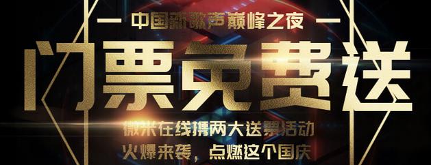 日前,互联网金融平台微米在线在大学校园启动了“猜冠军赢门票”的活动。据了解,活动的主题是“关注2017《中国新歌声》,为你心目中的冠军呐喊助威”。在校大学生可以从学员实力、导师能力、人气水平等几个方面对《中国新歌声》的冠军进行超前预测,给喜欢的导师队点赞,就有机会赢取总决赛门票,去鸟巢巅峰之夜现场。