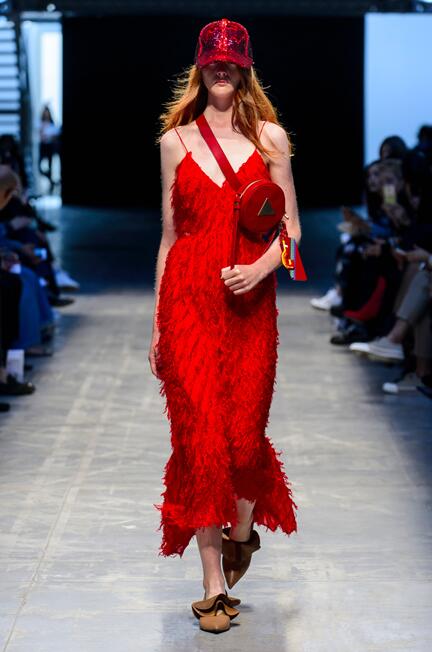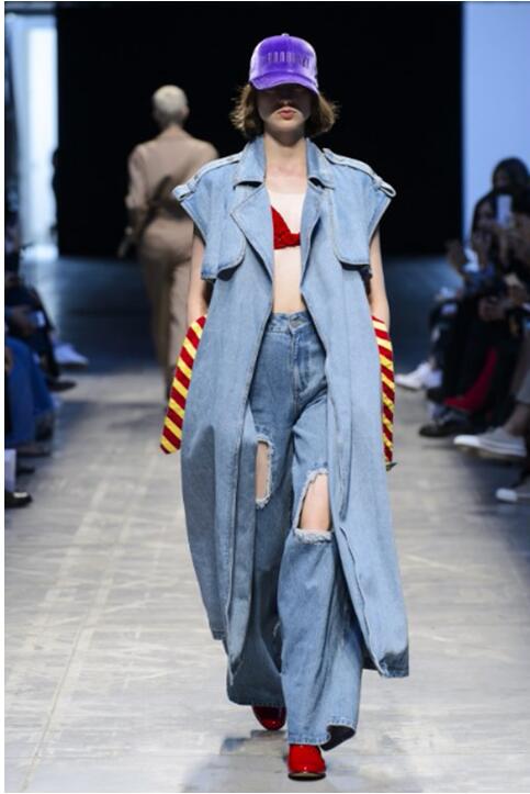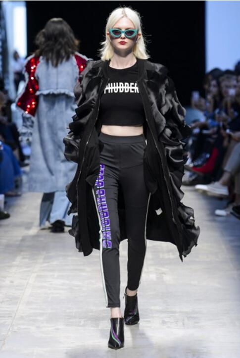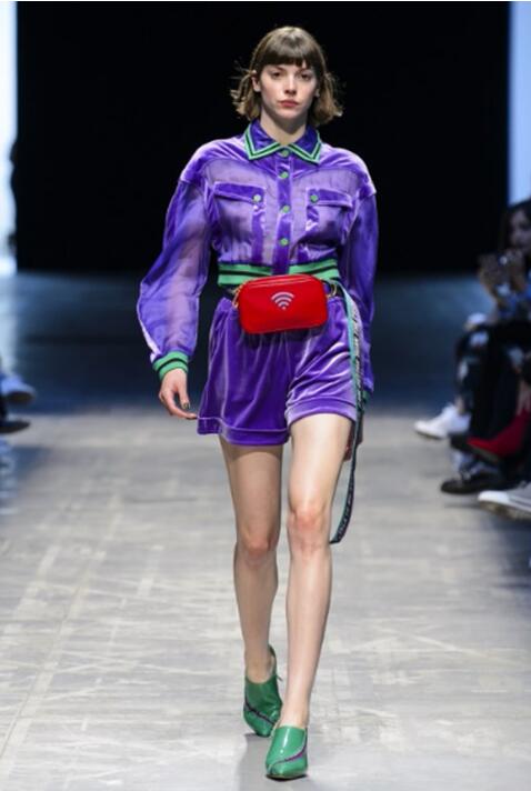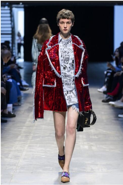 这个系列虽对复古的图像做了丰富的参考,但也完全切合对当代社会的描绘。事实上,涂鸦,标语和3.0时代网络流行文化的图像可以立即将观众带入当下的手机中毒狂潮当中。 80年代风格的廓形与大胆的撞色,同时又受牵制于不对称,磨损和透明度等元素,使其外观看起来像是游走在悬而未决的过去,现在和未来之间。