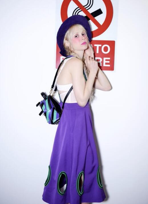 设计师杨子 ANNAKIKI 2018 S/S设计灵感来自当下常见的一种社会现象--“Phoneaholism”手机上瘾群体—低头族,手机和数字化的出现已经是人类历程进步的一部分,同时也破坏了正常的生活。我们习惯了“快”的碎片化节奏,生活都被各种资讯占据生活,出现严重的手机依赖症状,人们越来越趋近于情感表达的孤岛。