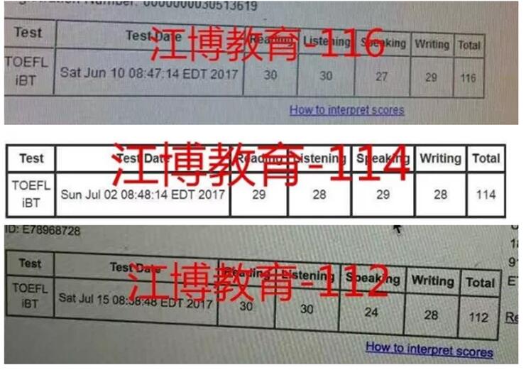 在过去的一年,江博教育的多位学员在老师帮助下拿到了116、114等高分托福成绩,我们也有理由相信,在江博教育机构,采用科学的学习方法,再通过学员自己的努力,拿到高分托福成绩将不再是难事。更多江博教育开课信息,请关注江博教育官方网站。 |