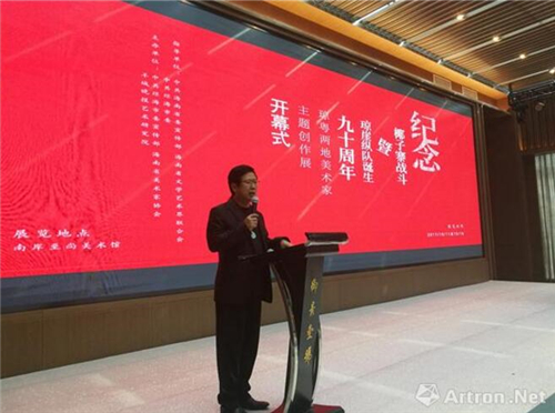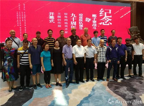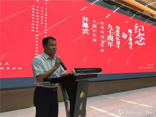 羊城晚报报业集团管委会副主任、羊城晚报社副社长李宜航在开幕式上致辞 ![]() 海南省琼海市委常委、宣传部长刘宁在开幕式上致辞 ![]() 来自海南的艺术家代表、琼海市美协名誉主席颜振胜在开幕式上致辞 ![]() 来自广东的艺术家代表、著名军旅画家廖宗怡在开幕式上致辞 ![]() 广州雕塑院院长、雕塑家许鸿飞在开幕式上致辞 本次展览由中共海南省委宣传部、海南省文学艺术界联合会、中共琼海市委担任指导单位,中共琼海市委宣传部、海南省美术家协会、羊城晚报艺术研究院共同主办,由南岸至尚美术馆协办。 ![]() 现场揭幕许鸿飞雕塑作品《椰子寨战斗》 ![]() 嘉宾合影留念 ![]() 展览开幕式现场 本次展览开幕式由广东民族乐团男高音、国家一级演员陈前主持,并以一曲《万泉河水清又清》庆祝展览开幕。众多海南、广东两地领导、艺术界人士出席了开幕式,其中,羊城晚报报业集团管委会副主任、羊城晚报社副社长李宜航,海南省琼海市委常委、宣传部长刘宁,来自海南的艺术家代表、琼海市美协名誉主席颜振胜,来自广东的艺术家代表、著名军旅画家廖宗怡,以及广州雕塑院院长、雕塑家许鸿飞先后在开幕式上致辞。 ![]() ![]() ![]() ![]() ![]() “纪念椰子寨战斗暨琼崖纵队诞生90周年琼粤两地美术家主题创作展·广州站”展览现场 李宜航在致辞中讲述了此次展览的由来。今年7月,羊城晚报艺术研究院和中共琼海市委宣传部、海南省美术家协会共同组织琼粤两地30多位艺术家,深入琼海,沿着先烈们战斗足迹,重走琼崖革命之路。带着为历史立碑、为时代造像的使命,艺术家们在两个月内创作了一系列反映琼崖革命和椰子寨战斗的主题作品。2017年9月22日至10月6日海南省博物馆举办了“纪念椰子寨战斗暨琼崖纵队诞生九十周年琼粤两地美术家主题创作展”,为进一步弘扬琼崖红色文化,密切琼粤两地的艺术交流,该展移师广州。 ![]() ![]() ![]() ![]() ![]() “纪念椰子寨战斗暨琼崖纵队诞生90周年琼粤两地美术家主题创作展·广州站”展览现场 刘宁表示,椰子寨战斗虽然规模不大,但意义重大,战斗打响了全琼武装总暴动第一枪。此次“纪念椰子寨战斗暨琼崖纵队诞生九十周年琼粤两地美术家主题创作展”,是琼崖红色革命历史的艺术再现、是对先烈们英勇卓绝忠贞不屈的革命精神的讴歌和弘扬、也是琼粤两地艺术家文化交流的新篇章。 ![]() 《椰林风雷》廖宗怡、张树军、马万东 油画 163cmx203cm 油画《椰林风雷》表现了1927年9月23日清晨,讨逆革命军冒着狂风暴雨攻打敌人炮楼据点这一历史场面,画面战斗氛围浓厚,色调以冷色为主,营造出紧张的气氛。据了解,为了准确把握人物动态及造型,该油画作者之一、年已八旬的著名军旅画家廖宗怡还特意穿戴道具,装摆姿态。 ![]() 《椰子寨战斗》 许鸿飞 130cmx136cmx79cm 雕塑家许鸿飞在创作《椰子寨战斗》这件作品时,并未采用人们熟知的“肥女”形象,而是着重刻画了一个大无畏的领军者形象,其身后三名战士分别高举大旗、手握大刀、执杖向前,突出打响琼崖革命第一枪的历史意义。 ![]() 《传家宝》符嘉臻 油画 ![]() 《琼崖烈焰》冯功乐 国画 250cmx180cm ![]() 《英雄花.追念永存》杨全发 水印木刻 120cm x83cm ![]() 《东方欲晓》王家儒 水彩 54cmx39cm 琼粤两地地缘相近、人缘相亲、文化相通。本次琼粤两地美术家主题创作展,两地艺术家采用油画、国画、水彩、版画、剪纸等艺术表现形式,以独特的视角、恢弘的画面,用或浪漫奔放,或写实典雅,或隐喻象征,或夸张新奇的艺术语言,将椰子寨战斗及琼崖武装革命中光辉的英雄形象刻画出来,既是对琼崖红色革命历史的艺术再现,对先烈们英勇卓绝、忠贞不屈的革命精神的讴歌和弘扬,也是琼粤两地艺术家文化交流的新篇章。 开幕式结束后还将召开《琼海红色文化形象重塑与美丽乡村建设》研讨会。 据悉,本次展览将持续至2017年10月19日。 |