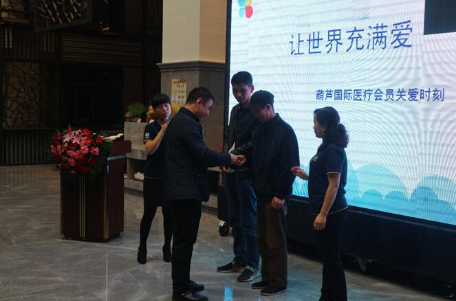 最让现场嘉宾感动的是第三位互助会员黄伟国老先生,在当初邀请他参加活动的时候他就表示一定参加,他告诉探访小分队的伙伴:“我现在被帮助了,我出去说一句顶你们出去说一百句”,在现场他非常坦然的讲述自己的经历,当主持人问他“您当初为什么要加入?您是否怀疑过这个平台”老人家的话语让我们很受感动:“我做公益也15年了,我愿意帮助人,愿意做好人好事,所以当初没多想就加入了,泛华那么大,一家美国上市公司他不会骗人的,今天到现场就是希望大家多多了解多多宣传,把这样好的一项公益活动传播出去,让更多普通家庭的人们加入,这样我们的生活、我们的家庭、我们的社会才会越来越好”。 第二位互助会员支瑞强的分享时,我们同样邀请了陕西平台四心爱心大使姚娇女士作为嘉宾主持,姚娇女士今年推广会员近300人,同样也是支瑞强探访小分队成员,见证了探访的全过程,现场姚娇女士对自己为什么大力推广做了分享,并且呼吁现场所有参会嘉宾积极推广让更多的家庭在风雨来临有e互助会员的爱与支持。支彦伟作为受助会员支瑞强先生的代表也泪洒现场,“我的父亲是一位农民,当初泛华的朋友讲保险,父亲告诫我是骗人的,我们都没有买,但泛华的朋友给我讲e互助,我当时碍于面子就加了,反正没多少钱,全当捐了,没想到自己的父亲却得了病,当初泛华朋友告诉我还有e互助,我们就没有抱任何希望,没想到他们不光来看父亲还给了10万互助金,我了解我父亲,如果没有这10万,他一定会选择保守治疗回家休养,但那天探访的马总说10万是互助平台近200万会员的力量与加持,希望父亲积极面对生活面对疾病,我父亲现在才一直坚持治疗,而且说这钱一定用到最有价值的地方,不然对不起全国的会员”。 “这是心得呼唤,这是爱的奉献,这是人间的春分,这是生命的源泉,只要人人献出一点爱,世界就会变成美好的人间......”郭珊不光是主持人但作为陕西泛华好声音歌曲大赛第一名的选手,将一首《爱的奉献》献给现场每一位嘉宾,让我们祝福三位受助会员早日康复;祝福每个家庭拥有幸福安康。 本次活动邀约到葫芦国际医疗的负责人江黎先生为三位受助会员赠送西京医院价值1000元免费诊疗卡,希望好人早日康复。