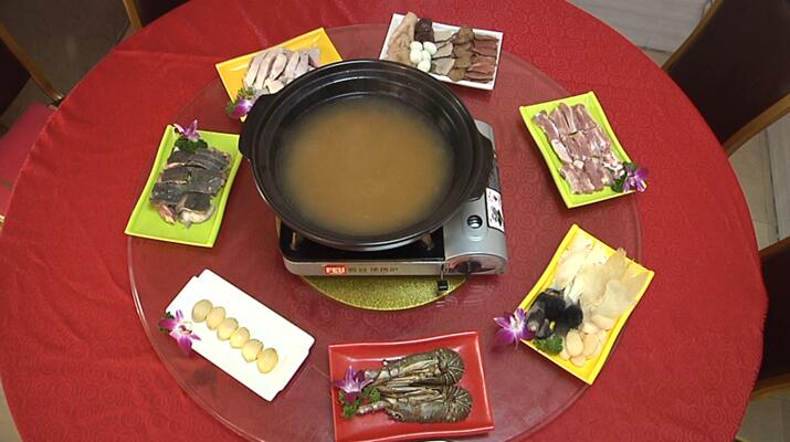 另一个重头菜是至尊佛跳墙煲,汤底采用,老鸡,鱼翅,鸭肉等多种材料经过四个小时以上精心熬制而成。至尊佛跳墙由名贵的鱼翅,花胶,海参,鲜瑶柱,中华鳖,排骨,青龙虾,南非鲍,响螺片,火腿,鸭肉,花菇,牛筋,鸡脚,鹌蛋,放养的农家鸡等十多种食材。味道鲜甜极至,西牛望月,龙凤呈祥煲,秘制酱炆山猪,等特色农家菜。
