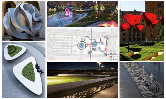 六本木是东京港区的繁华商务区,类似于北京的三里屯,集结了各国使馆、高档写字楼和各类商务休闲设施。景观设计,以细节小品和铺地色彩为两大特色。地砖取色黄、白、灰、黑四色,在社交小广场内交错铺排,以粗糙的地面视觉拉近人与空间的距离;在开放的步行广场内,取灰黑两色,连缀成直线纹,对空间视觉进行拉长;在景观小品中,融入民族文化元素,如木条、砾石,形成日本传统庭院风味。 京南空港壹号街区