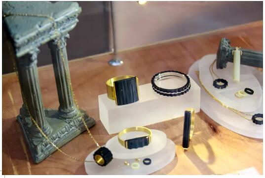 【由左至右:雕塑家蒋晟、独立设计师万一方、博玉东方执行董事Annie Wang、博玉东方首席珠宝设计师赵璐、博玉东方品牌部负责人高山丹】 作为博玉东方的跨界合作设计师,万一方对玉文化有着独特见解,与博玉东方共同创作了甦系列、融系列、汉字系列三大系列作品,并在作品展上进行了公开展览。这三大系列作品在保留了玉石温和品性的同时,也大胆利用了直线条纹理,与金、银等贵金属相组合。以年轻人的视角,用突破常规的设计手法,营造出了符合现代美学为基础的审美造型,是玉石珠宝的一次年轻化创新尝试。