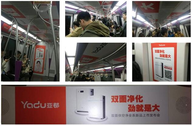 随访了一下现场的亚都品牌工作人员获知,今天是亚都双面侠升级版新品正式上市发布,好巧。地铁里的发布会,还真是第一次看到,无意中成了“参会者”之一,很是有点儿意思。 “双面净化、劲就是大”,一句这么互联网化的产品卖点,这么大的展现形式,够新鲜,很难想象来自拥有30年历史的亚都。