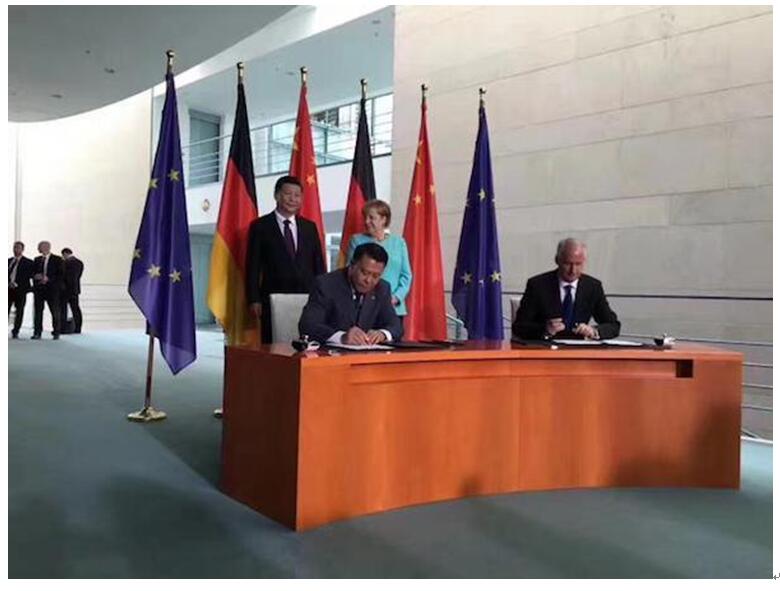 中国国家主席习近平与德国总理默克尔推动北汽与戴姆勒达成新能源战略合作 目前,中国是全球最大汽车市场,也是全球最大新能源汽车产市场。中国汽车工业协会数据显示,“十二五”期间,我国电动汽车销量累计达45.1万辆,超越美国成为全球最大电动汽车市场。新能源汽车观察家推测,2020年新能源汽车产销量突破300万并不难,而这些星星之火将燎原,让新能源汽车的优势如涟漪一般,进入中国每一个角落。从数据增速来看,单2016年我国新能源汽车产销就突破50万辆,累计超过100万辆,占全球50%,实现产销量、保有量、充电桩建成数量全球第一,成为最大产销市场。而值得注意的是,2016年国家未出台实质性推动政策。中汽协数据显示,中国新能源汽车销量将以年均40%增速增长,截止2020年将完成200万辆年销售目标,突破三百万辆是极有可能的。 所以,中国几乎是所有全球巨头必争之地,大众与江淮、北汽与戴姆勒、众泰和福特等工厂即将落成并实现量产。尤为重要的,此次的合资合作已经不再是“市场换技术”,而更像是国外巨头不得不选择的战略合作。 孙博伟指出,这意味着2016年进入爆发前夜,2017年成为新能源汽车元年。