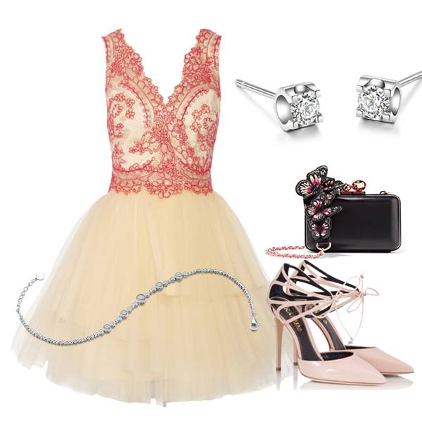 “玫瑰与诗”系列“情意结”浪漫风格手链 “玫瑰与诗”系列“幸运结”浪漫风格耳饰 搭配指南:粉色系亮面连衣裙青春活泼,亮面的材质最适合聚会热闹的气氛。H型的收腰裙身增添了一丝女人味,波浪状的裙边在细节处勾勒了浪漫的情怀。裸色系的鞋包柔和了大面积的亮色。甜美的蝴蝶结耳钉搭配蝴蝶结手链,轻巧灵秀。 【萝莉小仙女】 小仙女就算在派对中也一定要仙气满满,谁规定在派对中就一定要妖艳,清新自然的装扮加上配饰的点缀一样可以成为派对中的焦点。
