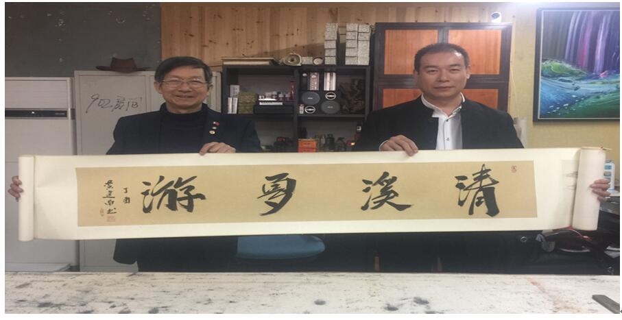 访谈结束后,黄建南先生为著名画家杨弘岳先生的长卷作品《清溪夏游》、《观山悟道》、《万里江山图》题款。黄建南先生对杨弘岳画家的作品高度赞赏:以自身的感悟感知,其画域甚广,山水画更是极具观赏收藏价值,达到了创新艺术与传统艺术的统一的完美结合。