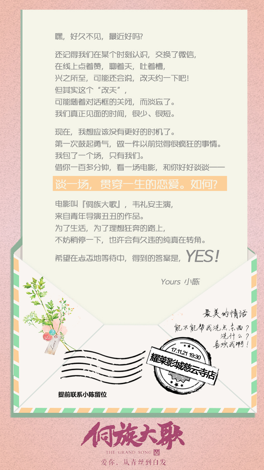 电影《侗族大歌》是青年导演丑丑历时6年,以侗族大歌为切入点,反映我国优质民族文化的电影作品,终于在11月17日全国公映。但即使是非热门档期,也遭遇毁灭式排片,让这部影片机会几乎没有机会进入公众视野。 据观众的反馈,无不被片中痴缠一生的恋情打动,在快餐时代,鲜有如此干净纯粹的爱情,大呼“结尾很好哭”,希望带着朋友“二刷”该片。“韦礼安唱侗族大歌演侗族’大哥’令人惊喜,变成琵琶精的桥段又让人忍俊不禁。希望有机会去现场听他唱歌!”