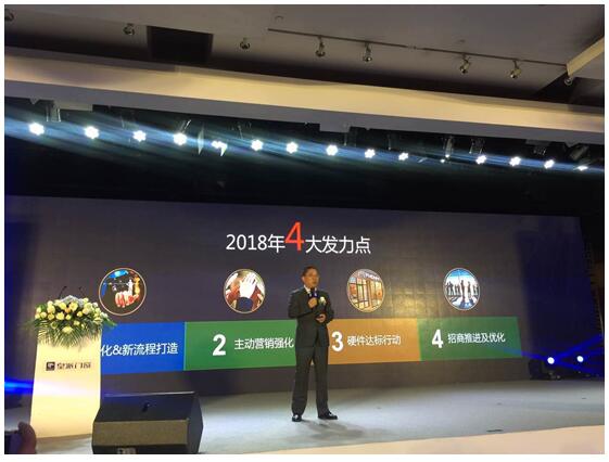 皇派营销中心总经理阳总向各位合作伙伴汇报了2017年皇派取得的成绩,分享了2018年的战略规划;以及解读2018年的销售政策;回顾2017年皇派营销大事迹,携手网易发起“拒绝噪音,请给她35分贝的爱”皇派门窗&网易4.16世界噪音日大型公益行动;发布《中国城市居住噪音指数白皮书》;成为中国系统门窗标准制定单位等活动,把皇派2017年发展推向新高度;并且宣布了2018年皇派市场政策,确保了皇派门窗品牌未来能够提速前行。