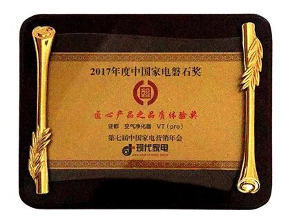 2017年11月29日,杭州开元名都大酒店里,以“新生态 融智慧 创未来”为主题的开幕大会揭开了为期三天的“第七届中国家电营销年会”的序幕。来自全国家电业的品牌商、代理商、零售商、电商、舒适家居系统集成商等千余商家到会,亚都作为空净行业元老,成为受邀出席本次大会的最重量级嘉宾,其旗下2017年全系新品“双面侠军团”空气净化器凭借行业领先的原创科技技术、极致的产品质量以及出色的用户体验服务,一路过关斩将,荣膺“中国家电磐石奖最具品质体验奖”。
