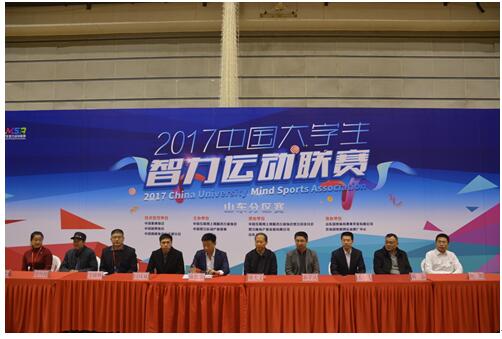 2017年12月2日,由中国象棋协会、中国桥牌协会、中国围棋协会五子棋分会技术指导,中国互联网上网服务行业协会、中国智力运动产业基地主办,智力体育产业发展有限公司、山东大学承办的面向大学群体的群众性智力运动赛事——2017中国大学生智力运动联赛山东分区赛在山东大学拉开帷幕。 山东省体育局党组成员、副局长徐大义,中国智力运动产业基地执行主任、中国互联网上网服务行业协会智力运动竞技分会会长陈红卫,中国互联网上网服务行业协会智力运动竞技分会秘书长、中国大学生智力运动联赛组委会副主任闫成斌、山东大学体育学院党委副书记郭学庆,山东省学校体育协会秘书长山东大学体育学院副院长王飞,山东省棋牌运动管理中心副主任韩磊,山东国奥体育赛事开发有限公司济南国奥棋牌运动推广中心主任刘凯等嘉宾出席了比赛现场。