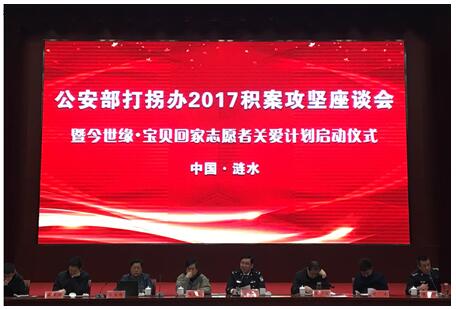践行十九大精神,警民同心缘聚力量 随着国际志愿者日的到来,同时也为了落实十九大精神,践行“从群众中来,到群众中去”,“一切为了群众,一切依靠群众”的理念,12月4日,在江苏今世缘总部会议中心举行了公安部打拐办2017积案攻坚座谈会暨“今世缘·宝贝回家志愿者关爱计划“启动仪式,公安部刑侦局副局长陈士渠、江苏省公安厅刑侦局副局长赵广义、《今世缘·等着我》栏目制片人杨新刚、宝贝回家创始人张宝艳、今世缘酒业董事长周素明等来自公安部、央视、今世缘酒业领导,以及全国各地公安干警、宝贝回家志愿者等130余人共同出席会议。