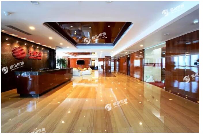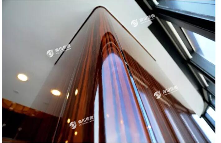 广田集团承接CFC大厦光汇石油办公楼层设计、施工为一体的室内精装修,以及部分公共区域的内部装修,装修面积10800平米,是集办公、会议、接待、健身为一体的多功能办公场所。装饰设计中多采用弧形曲线,美观大方,工艺精细,整体风格富丽堂皇,高端大气。 整个办公区域廊柱均采用弧型设计,反光度高,触感细腻平滑。木饰面均采用高光材质,不锈钢镶嵌黑金钢,更显精湛装饰工艺。