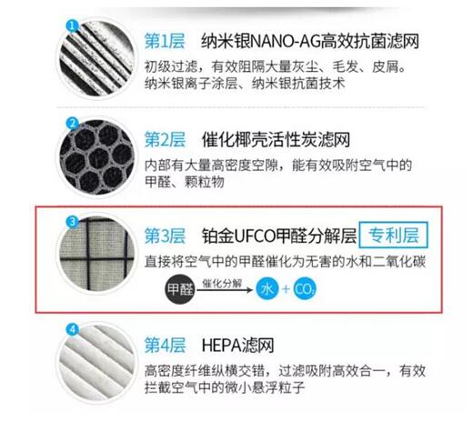 相较于传统的过滤吸附,UFCO分解层可以将甲醛催化分解为完全无害的水和二氧化碳,绿色环保,装修、新家具带来的甲醛统统可以一扫而光。