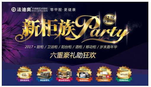 活动优惠 除了明星大咖们的倾情助阵之外,我想这场活动的优惠力度,也让人热血沸腾! 法迪奥2017“新柜族Party”联购大促销活动在全国各大线下加盟店、直营店全面铺开,从11月10日持续到12月10日,六重豪礼大放送:“进店就送500优惠券”、“新品套餐优惠价”、“阳台柜首发礼”、“电器活动套餐礼”、“满额即送浴室柜”、联购立即返现”。