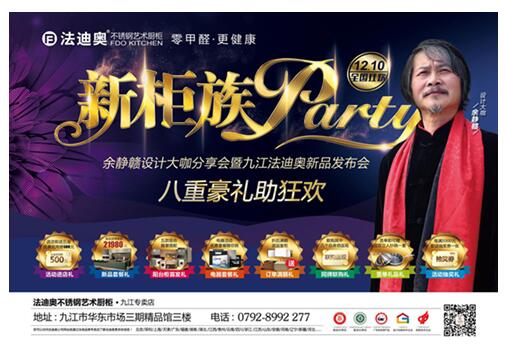 余静赣,中国装饰界的一位传奇人物,凭借其卓越的设计创意和艺术畅想,一度成为中国设计年度人物。在12月10日九江站,法迪奥不锈钢厨柜也将携手余静赣大师,与大家一同分享中国厨柜设计的高度见解和他的艺术美学,大咖级设计师风采,你岂能错过!