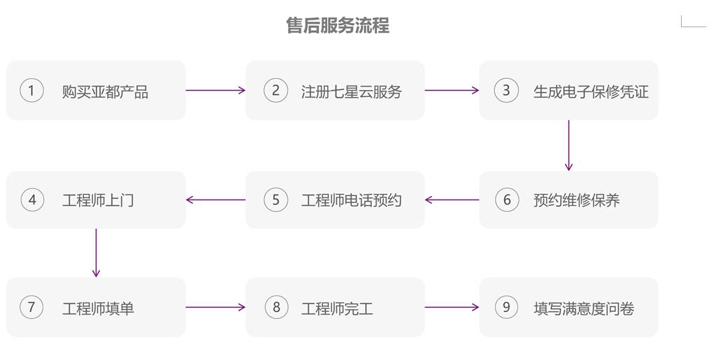 亚都售后服务流程 客服告诉我会尽快找维修人员上门维修。我当时对维修这种事,其实不是特别抱希望,按照以往的经验,大多数品牌都是售前热情,售后就各种怠慢。令我惊讶的是,亚都的维修人员第二天就上门了,服务态度特别好。除了水箱问题,他们还很细致地给我查看加湿器的其它部位是否故障。当时双十一还没过去几天,亚都的货源比较紧缺,维修人员就跟我说调货的速度可能不会特别快,但会尽量在3天内给我解决问题。然后只过了两天,他们就帮我把水箱送到了。 售后服务是考量一个品牌的重要因素。本来之前还观望要不要买他们的空气净化器和净水器,因为那些都是需要定期更换滤芯的,售后服务就显得非常重要。通过加湿器报修这个事情,我对亚都的售后就很信赖了。他们的报修流程特别简单,响应很及时,上门服务体验也很棒。于是前几天我又买了他们家的双面侠净化器VT(PRO)和净水器T5。亚都的售后服务网络覆盖了20多个省市 地区,他们的七星云服务开通的“附近网点”功能,点击就可查看离客户最近的网点,电话、地址、网点名称都一目了然,联系很方便。