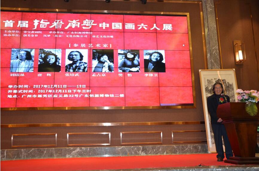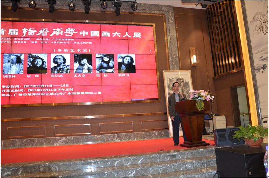 2017年12月11日,首届『指看南粵』荣宝斋画院中国画名家六人展在广东恒源博物馆隆重开幕。画展展出6位名家100余幅力作,展出中华优秀的艺术文化的独特魅力和深厚底蕴,推动京广两地名家画派文化交流,彰显中国文化艺术的自信。 十二届全国政协常委、民革中央第十二届委员常委、民革广东省十二届委员会副主任委员、广东省侨联专职副主席(巡视员)李崴先生;省直机关丁卫国先生、冀者女士;广东恒源集团董事长林伟雄先生;广东恒源博物馆馆长林佳岩女士;创美金谷董事长潭广偌先生;中国中央电视台民间智库主任张震先生;中国CEO 联盟执行主席张良先生;粤港企业促进会秘书长王瑞民先生等嘉宾出席了开幕式。
