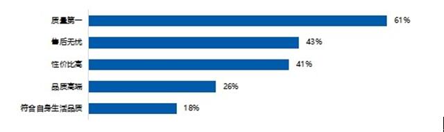 在中产阶级对高端家电产品的认知中,58%的中产阶级认为科技是高端家电产品首要特征,一款高端产品应该承载最新的技术,中国家电产品更新换代基本都是从技术层面出发的,新技术也决定了家电产品的内在价值。大多数中产阶级同样认为,优秀的品牌、设计、外观和售后同样是高端家电产品应具备的特征。