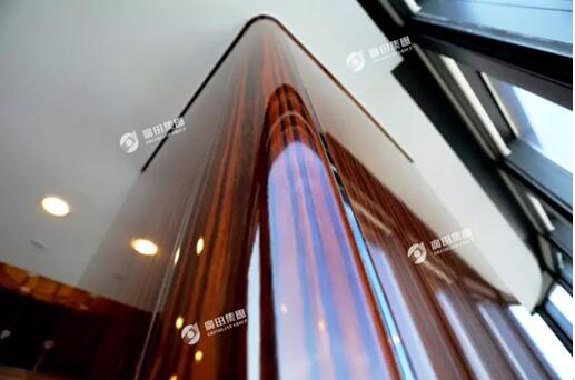 广田集团承接CFC大厦光汇石油办公楼层设计、施工为一体的室内精装修,以及部分公共区域的内部装修,装修面积10800平米,是集办公、会议、接待、健身为一体的多功能办公场所。装饰设计中多采用弧形曲线,美观大方,工艺精细,整体风格富丽堂皇,高端大气。 整个办公区域廊柱均采用弧型设计,反光度高,触感细腻平滑。木饰面均采用高光材质,不锈钢镶嵌黑金钢,更显精湛装饰工艺。