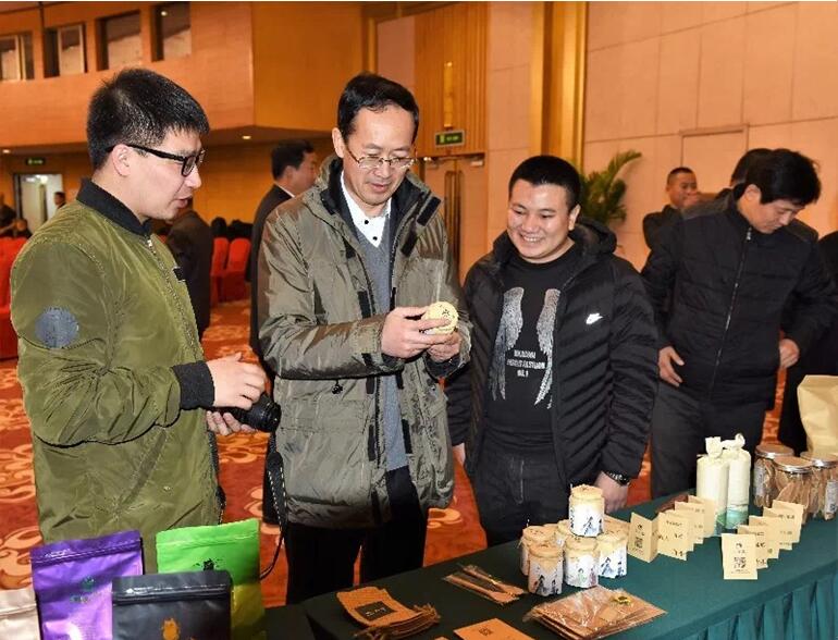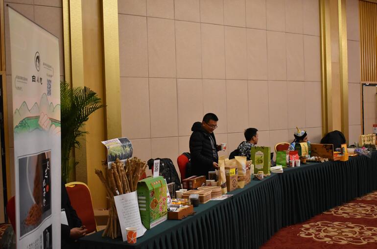 桦甸产品展示角,本次展会,桦甸参展企业约有30余家。 桦甸市委常委、宣传部长倪红军与白小志 桦甸市委常委、宣传部长倪红军给予白小志系列产品充分的肯定:“你们的产品很用心,这是动了脑筋的。想让家乡产品走出去,就得需要像你们这样的人才和想法。”我们很兴奋能够听到这样的反馈,同样也是对于我们这段时间工作的鼓励。我们在希望接下来的工作中,能够推出更美、更优质的产品。
