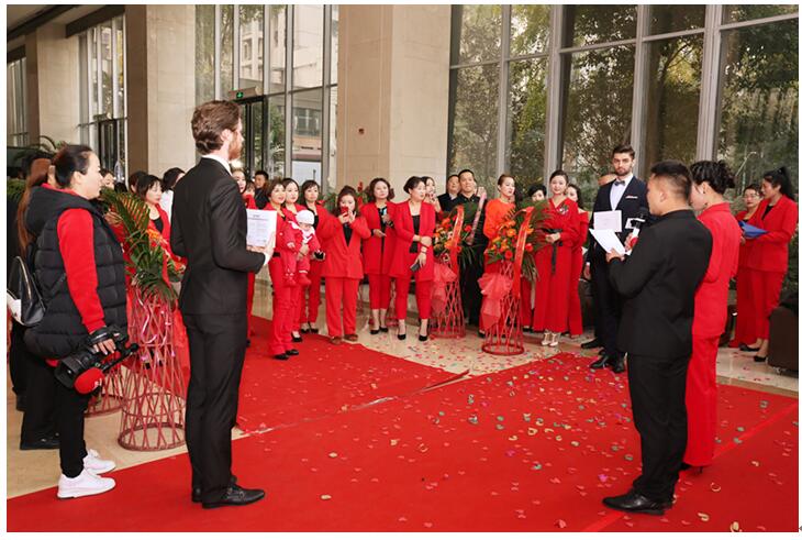 此次典礼由张滎青女士、高国强先生、肖雨含女士、任芷青女士、周菊园女士及经销商共同见证了这一盛事,亲手为开业剪彩。