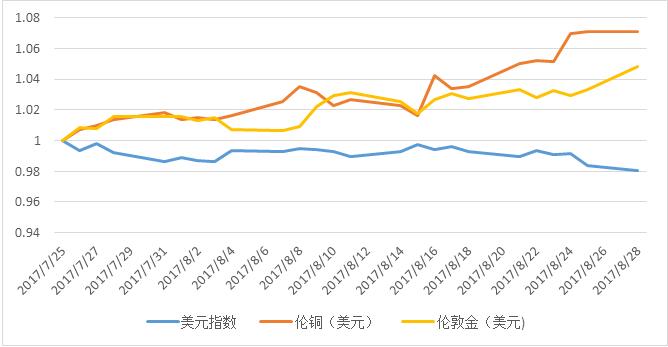 图表 3:8月风险事件的冲击中人民币表现的像避险货币 来源: Wind, 歌斐资产创新研究部 二、 铜金齐涨之谜 8月份几次风险事件的冲击抬升了金价,但不寻常的是铜价也在迅速上扬,这表面上看实在令人费解:铜价是跟踪全球增长的最佳指标之一,往往与风险偏好同涨同跌,但黄金明明是避险资产,在没有预期央行大放水的情况下,两者同涨令许多人困惑。