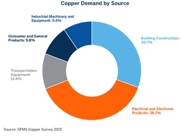 图表 4:美元贬值不足以解释铜金齐涨 来源: Wind, 歌斐资产创新研究部 有人说这是因为铜和黄金以美元计价,两者同涨来自于美元贬值,但我们把三者涨跌幅标准化后对比可以看出,7月末至今美元仅仅下跌2%,而黄金上涨了4.8%,铜价更是上涨了7.1%,很显然铜价的涨幅中,美元贬值以外的因素占了主要贡献。 表面上看铜金齐涨令人费解,但我们认为在现阶段这不仅不足为奇,简直是顺理成章。我们先来看一下为什么铜是追踪全球增长的有效指标。铜的用途(看下图)分布在电气电网,建筑设施,交运社保,机械机电制造,以及消费电子中,可以说被广泛用于生产活动的方方面面,同时,铜有完善的全球定价体系,是定价公平度最高的商品品种之一,因此它的价格起伏被认为是跟踪全球工业活动的最佳标尺之一。