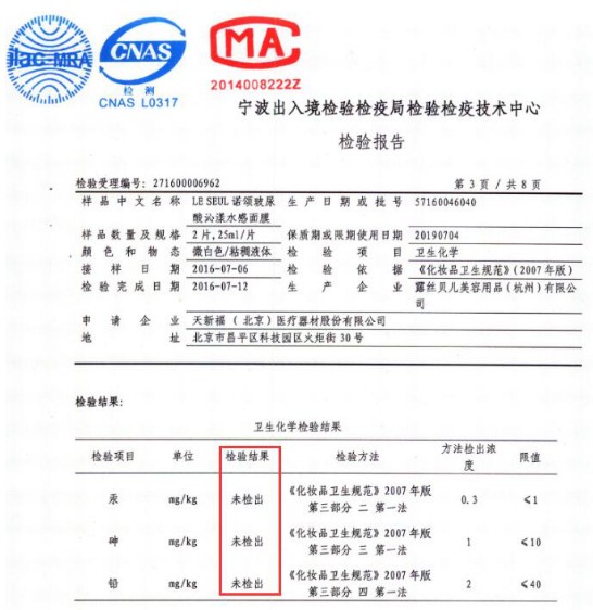 在安全问题频发的美妆市场上,仅Le seul 诺颂不敢有一丝懈怠,仅这两项安全标准测试,就优于市场众多面膜品牌。