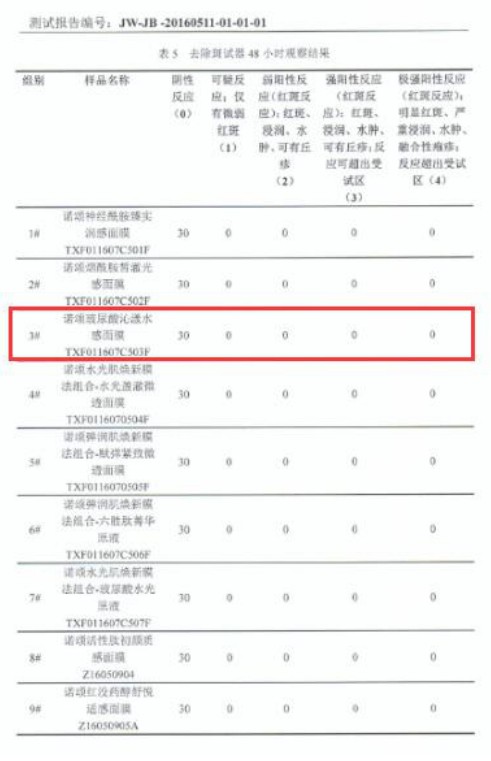 以Le seul 诺颂 玻尿酸沁漾水感面膜的检测数据为例 2、30位志愿者人体斑贴测试,0过敏率 Le seul 诺颂经过30位志愿者人体斑贴测试,0.5、24、48小时监测,均无一例过敏反应,温和低敏,敏感肌也可以安心使用。