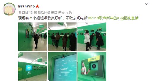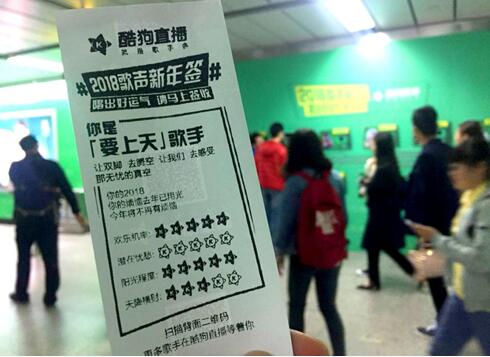 酷狗直播主打的“歌手多”,其实真不是夸大,在酷狗直播平台上至少有35万个歌手主播。“地铁歌声新年签”活动借着节日的美好寓意,于2018年的第一天正式上线,路过的乘客与神奇的2018歌声新年签互动装置产生了奇妙的化学反应,不仅很好的暗合了酷狗直播的品牌主张:歌手多(每个人都可以是歌手),还给北京和广州两个地方的乘客带来了很好的观赏与互动体验:毕竟在每天那么多无聊辣眼睛广告的熏陶下,期待值已经降低了很多,突然来这么一个又可以互动又养眼的广告,顿时产生了大量的“自来水”。