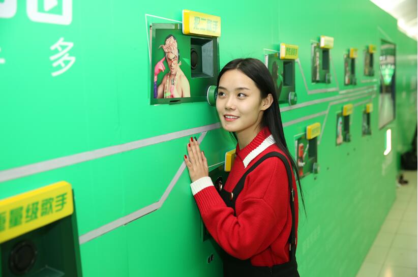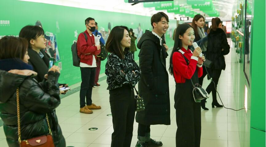 在互动墙满是文字云的大屏幕面前,拿起白色麦克风就能亮亮嗓,唱出你想唱的歌,过把K歌瘾。这种前所未见的地铁新装置,引来了不少少女、孩子的驻足和参与,瞧,大家都跃跃欲试呢!
