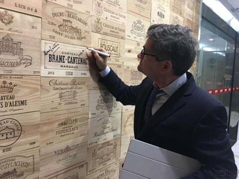 布朗康田酒庄的庄主亨利·露桐在红酒世界陈设墙上签名 红酒世界的全球名庄直播,不仅有利于葡萄酒文化的普及与推广,拉近消费者与著名酒庄之间的距离,让更多消费者认识了解许多世界知名酒庄,同时也展现了世界知名酒庄对红酒世界的信赖。 |