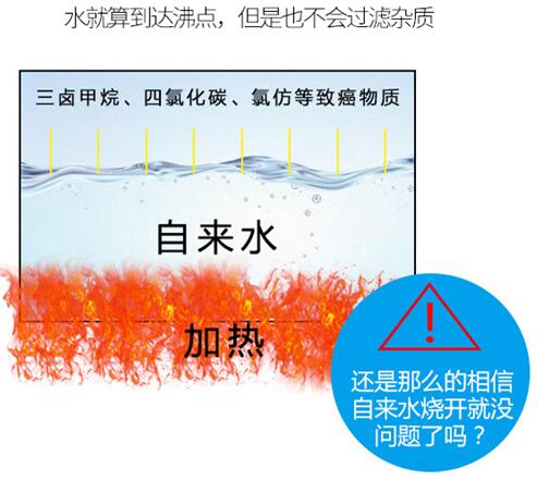 1、国内水污染日趋严重:我国人口密集、工业发展迅速,工业废水、农业污水、城市污水的排放,导致我国水污染问题不断加剧。据中国疾病预防控制中心对饮用水检测显示,全国26个省、区的180个县市,有43.3%的人在喝着不安全的水。 2、自来水煮沸也并不安全:大部分人以为自来水出厂前经过专业消毒,看着清澈干净,烧开之后就能放心饮用。但实际上,自来水经过烧开其实只是杀死了细菌,水中的重金属、残留的氯、各种化学污染物并没有消失,这些有害物质进入人体不断积累,对健康造成极大危害。