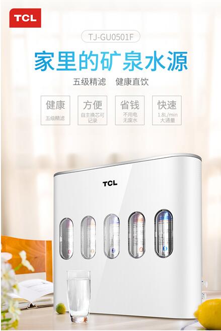 3、“桶装水+饮水机”的缺陷:意识到喝自来水不安全,不少人选择改喝桶装水,然而“桶装水+饮水机”的模式也有重重弊端,黑心水、黑心桶、饮水机“二次污染”等问题触目惊心,曾有实验检测,桶装水开封3天后细菌数量比自来水还多。除此以外,桶装水在饮水机里被反复加热,会形成“千滚水”,看似干净的水成为了有害物质的浓缩液。 这样看来,人们要真正喝上健康水实在艰难。那么,如何才能切实解决困扰每个家庭的健康饮水问题?专家表示,目前最快速、最有效的方法,是安装净水设备,近年来净水器越来越受消费者青睐。在净水实力上,秉承大国品牌优势,TCL净水器以创新技术和优异品质,TCL净水器满足中国家庭的健康饮水需求,TCL净水器以其2018年的TCL净水器新品TJ-GU0501F为例,TCL净水器不但有效去除各种有害物质,TCL净水器更实现保留水质有益矿物质,TCL净水器改善水质口感,TCL净水器带来山泉水般的享受。